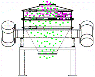 粉末直排篩利用振動電機利用其軸上下端的兩組偏心塊(不平衡偏心塊)的相位角以及兩臺電機之間的交叉角度將振動電機的旋轉(zhuǎn)運動變?yōu)樗?、垂直、傾斜以及離心作用的多作用力重疊,再將這種作用力傳遞給篩面,從而達到篩分的目的。改變上下偏心塊的相位角和重量,可以改變激振力的大小和物料的運動軌跡。